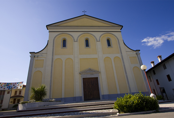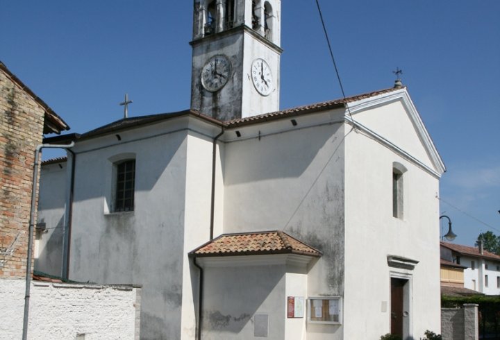 Della metà dell'Ottocento (1841-1854) costruita su progetto di Gio.Battista Cavedalis: all'interno, altare barocco acquistato a Venezia e messo a...