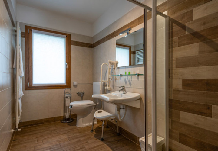 campanello di emergenza nel bagno WC con seduta più alta WC con maniglioni accesso disabili. fax/fotocopiatrice spazi per riunioni/banchetti (a pagamento)