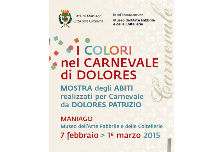 E’ stato il carnevale maniaghese a dare il la al suo talento e più in particolare la necessità di realizzare per questa occasione i vestiti per i suoi figli e per chi ne faceva richiesta. E proprio per tornare alle origini, il Comune di Maniago organizza, nel periodo compreso tra il 7 febbraio e il 1° marzo, la mostra “I Colori nel Carnevale di Dolores”, durante la quale verranno esposti gli abiti da lei confezionati per il carnevale.